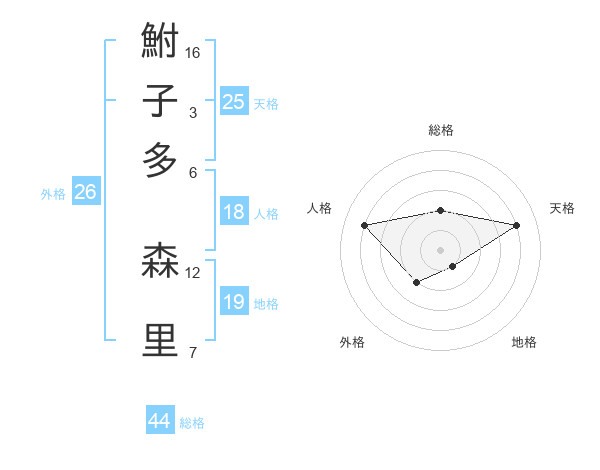 鮒子多 森里さんを姓名の画数から五運を鑑定