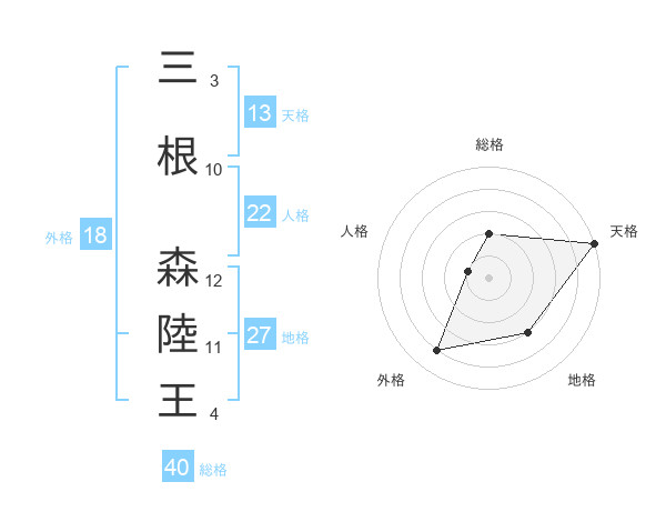 三根 森陸王さんを姓名の画数から五運を鑑定