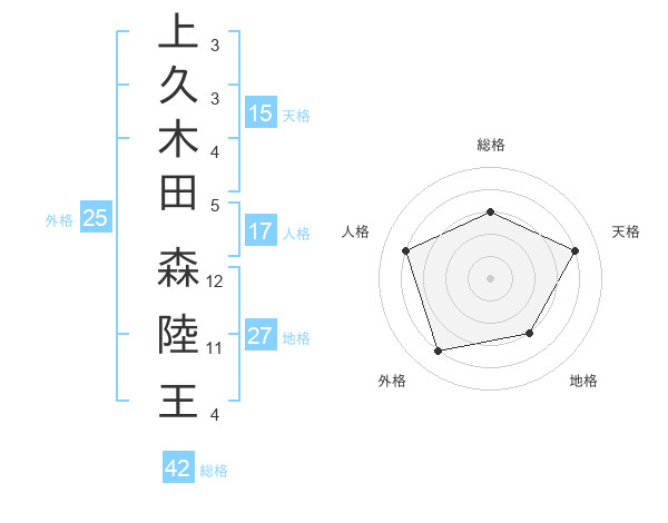 上久木田 森陸王さんを姓名の画数から五運を鑑定