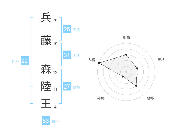 兵藤 森陸王さんを姓名の画数から五運を鑑定