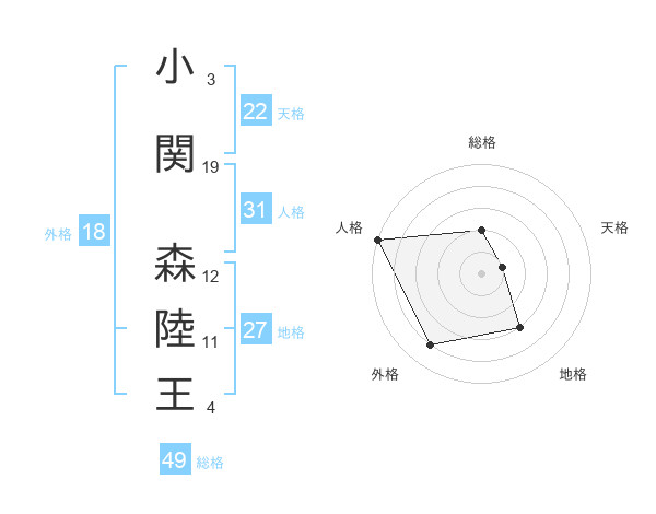 小関 森陸王さんを姓名の画数から五運を鑑定