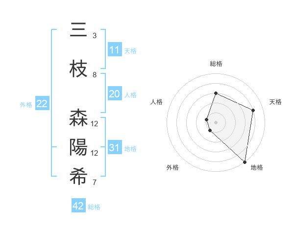 三枝 森陽希さんの外格は22画の1点!