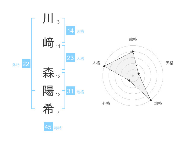 川﨑 森陽希さんを姓名の画数から五運を鑑定