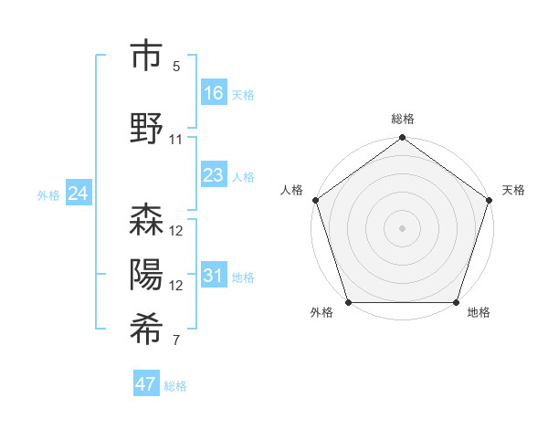 市野 森陽希さんを姓名の画数から五運を鑑定