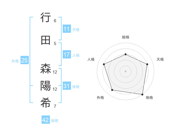 行田 森陽希さんを姓名の画数から五運を鑑定