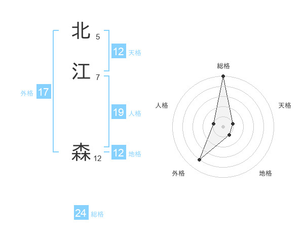 北江 森さんの総格は24画の5点!