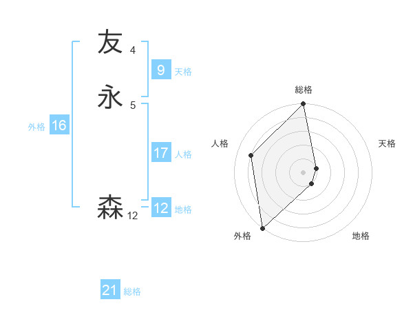 友永 森さんの総格は21画の5点!