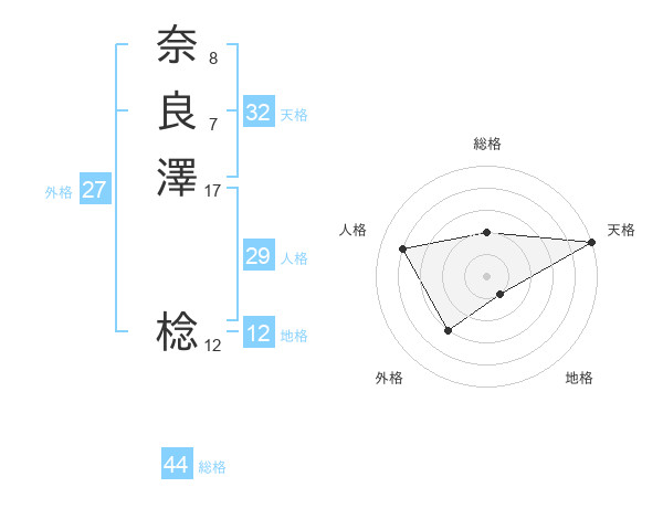 奈良澤 棯さんの総格は44画の2点!