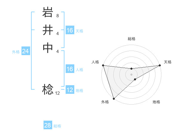 岩井中 棯さんの総格は28画の1点!