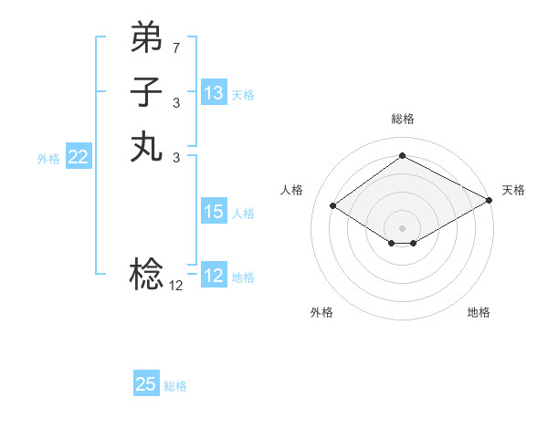 弟子丸 棯さんの総格は25画の4点!