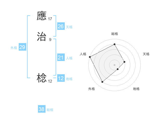 應治 棯さんの総格は38画の4点!