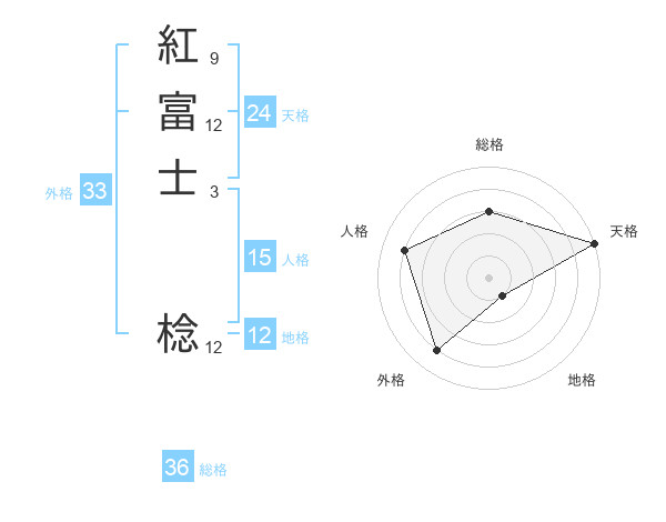 紅富士 棯さんの総格は36画の3点!