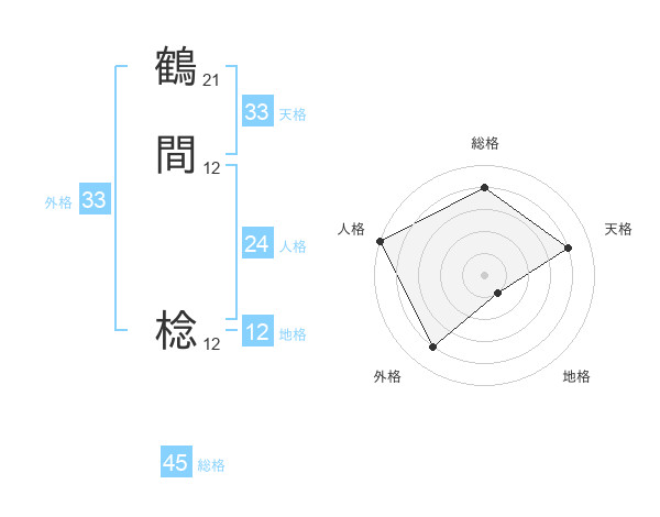鶴間 棯さんの総格は45画の4点!