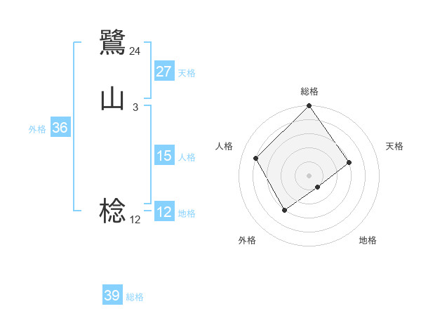 鷺山 棯さんの総格は39画の5点!