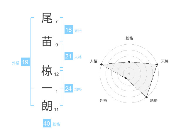 尾苗 椋一朗さんを姓名の画数から五運を鑑定