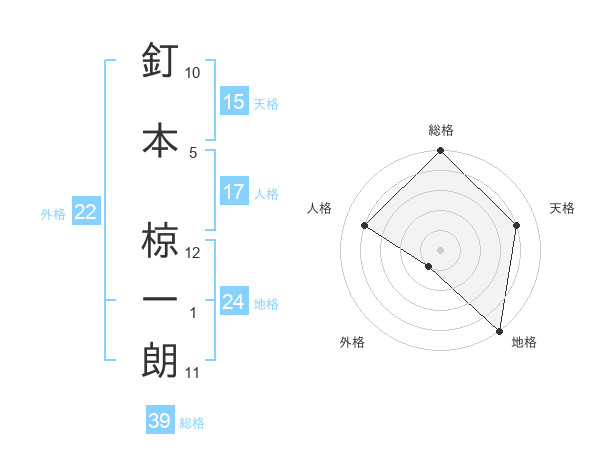 釘本 椋一朗さんを姓名の画数から五運を鑑定