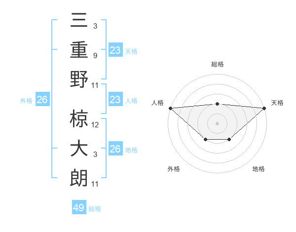 三重野 椋大朗さんを姓名の画数から五運を鑑定