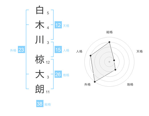 白木川 椋大朗さんを姓名の画数から五運を鑑定