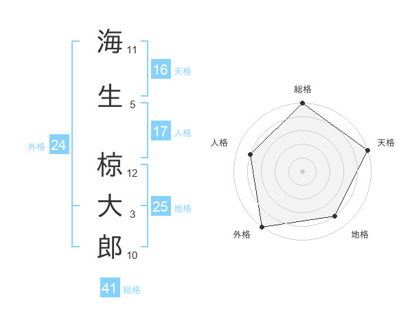 海生 椋大郎さんの総格は41画の5点!