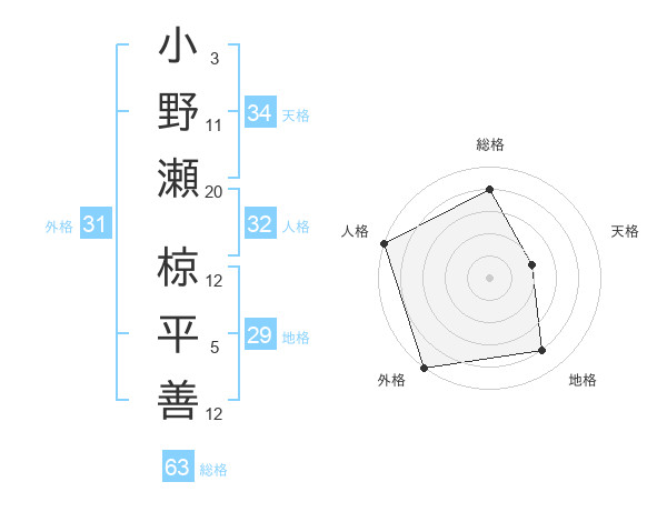 小野瀬 椋平善さんを姓名の画数から五運を鑑定