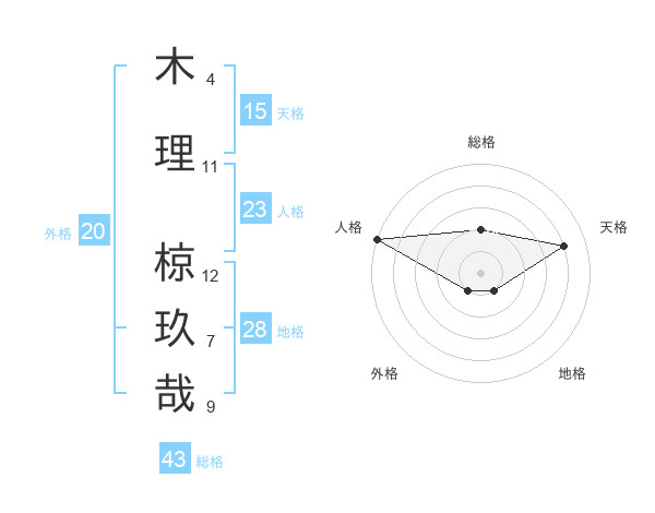 木理 椋玖哉さんを姓名の画数から五運を鑑定