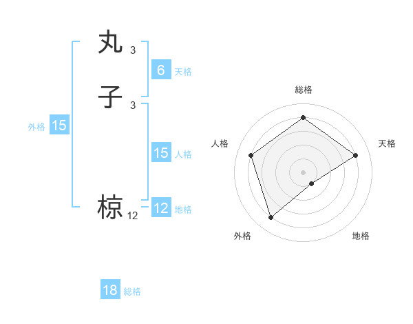 丸子 椋さんの総格は18画の4点!