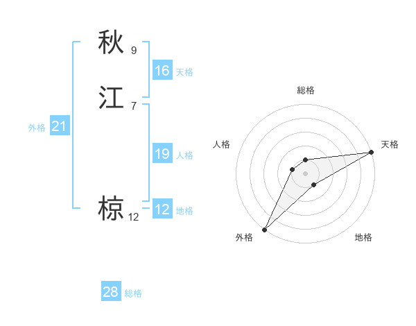 秋江 椋さんの天格は16画の5点!
