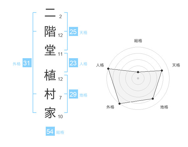 二階堂 植村家さんを姓名の画数から五運を鑑定