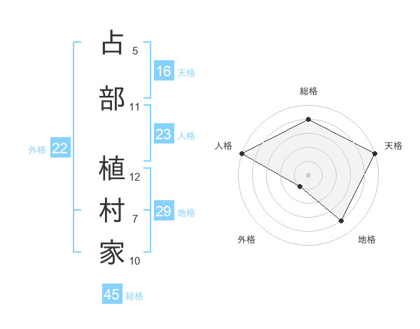 占部 植村家さんの天格は16画の5点!
