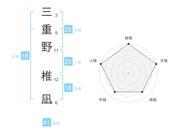 三重野 椎凪さんを姓名の画数から五運を鑑定