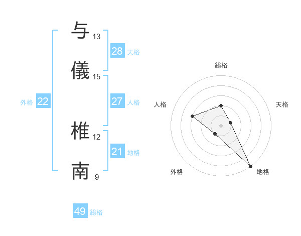 与儀 椎南さんを姓名の画数から五運を鑑定
