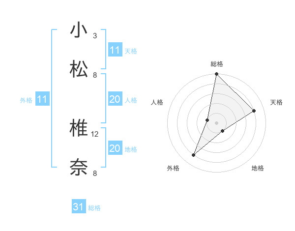 小松 椎奈さんを姓名の画数から五運を鑑定