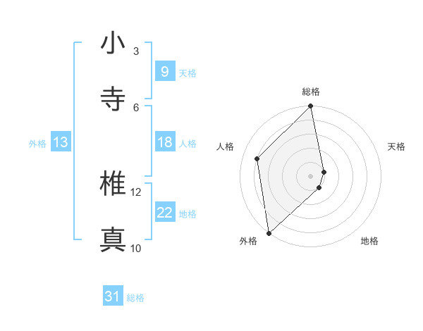 小寺 椎真さんを姓名の画数から五運を鑑定