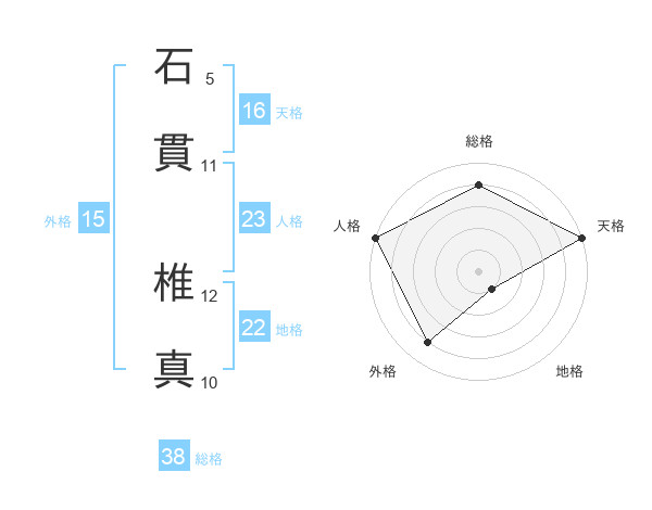 石貫 椎真さんを姓名の画数から五運を鑑定
