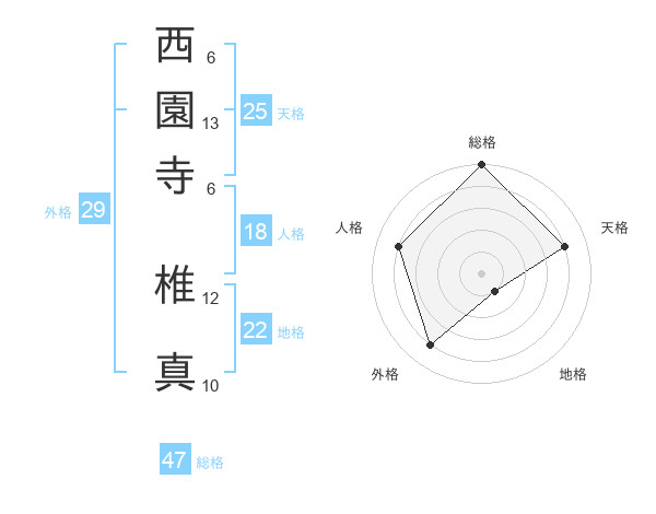 西園寺 椎真さんを姓名の画数から五運を鑑定