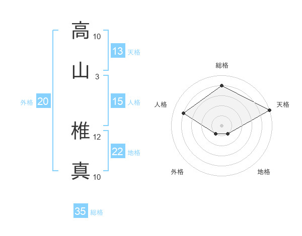 高山 椎真さんの総格は35画の4点!