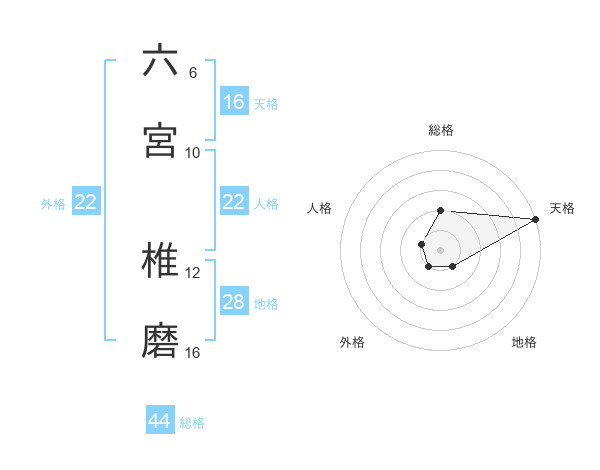 六宮 椎磨さんを姓名の画数から五運を鑑定