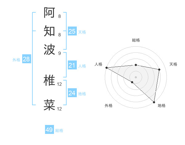 阿知波 椎菜さんを姓名の画数から五運を鑑定