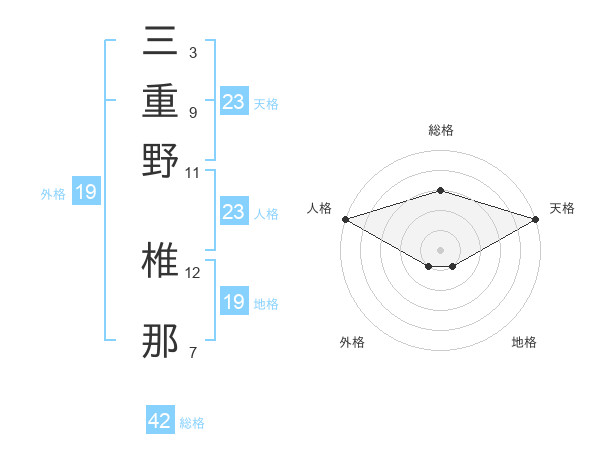 三重野 椎那さんを姓名の画数から五運を鑑定