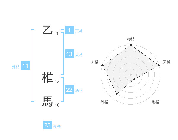 乙 椎馬さんの総格は23画の5点!