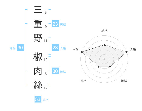 三重野 椒肉絲さんの総格は53画の3点!