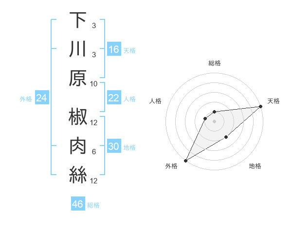下川原 椒肉絲さんを姓名の画数から五運を鑑定
