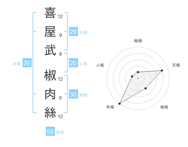 喜屋武 椒肉絲さんの外格は39画の5点!