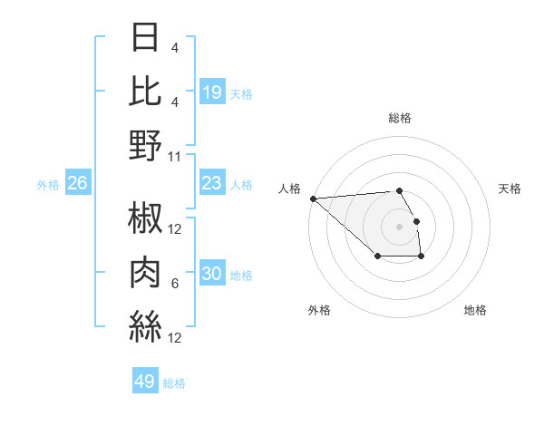 日比野 椒肉絲さんを姓名の画数から五運を鑑定