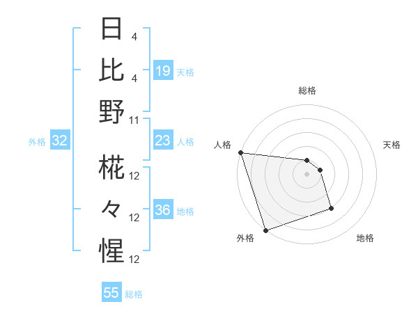 日比野 椛々惺さんの外格は32画の5点!