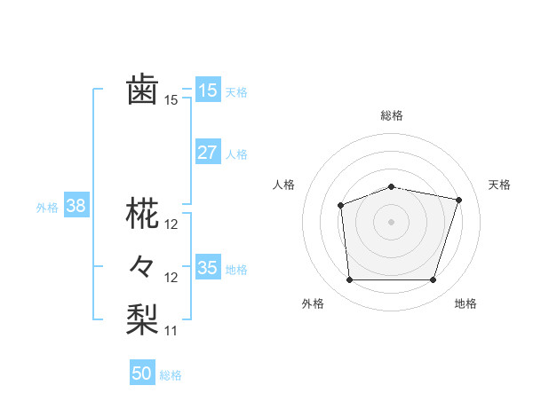 歯 椛々梨さんの総格は50画の2点!