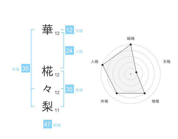 華 椛々梨さんを姓名の画数から五運を鑑定