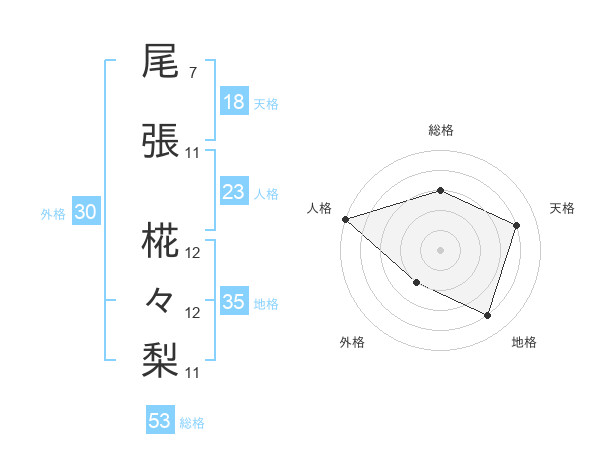尾張 椛々梨さんを姓名の画数から五運を鑑定