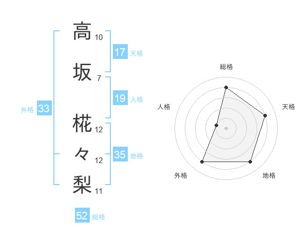 高坂 椛々梨さんを姓名の画数から五運を鑑定