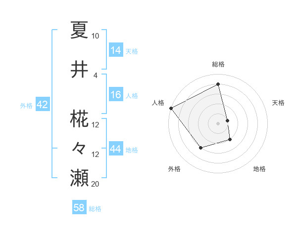 夏井 椛々瀬さんの総格は58画の4点!